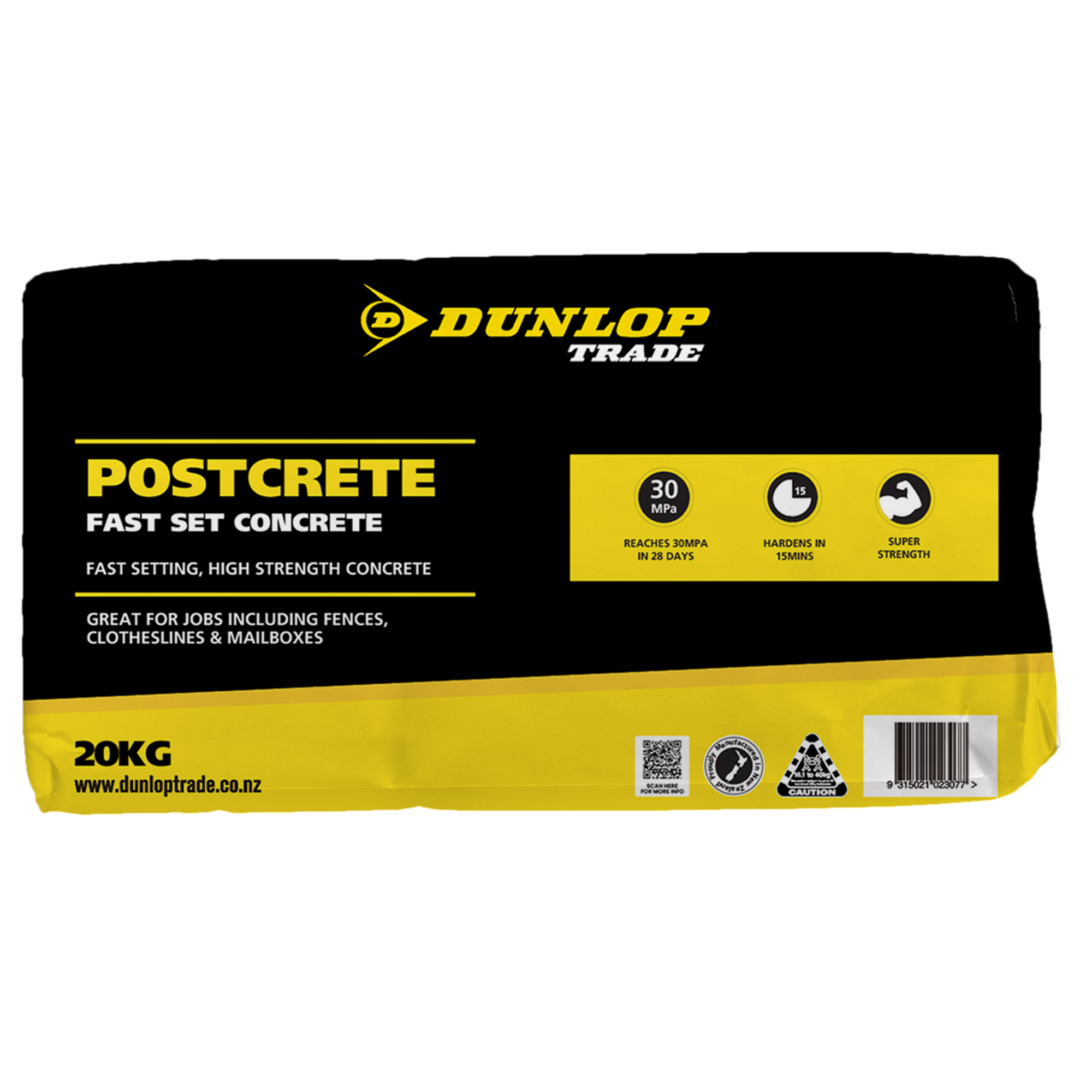 Dunlop Postcrete Fast Set Concrete for any posthole concrete project requiring fast-setting high strength with structural requirements up to 30 MPa.